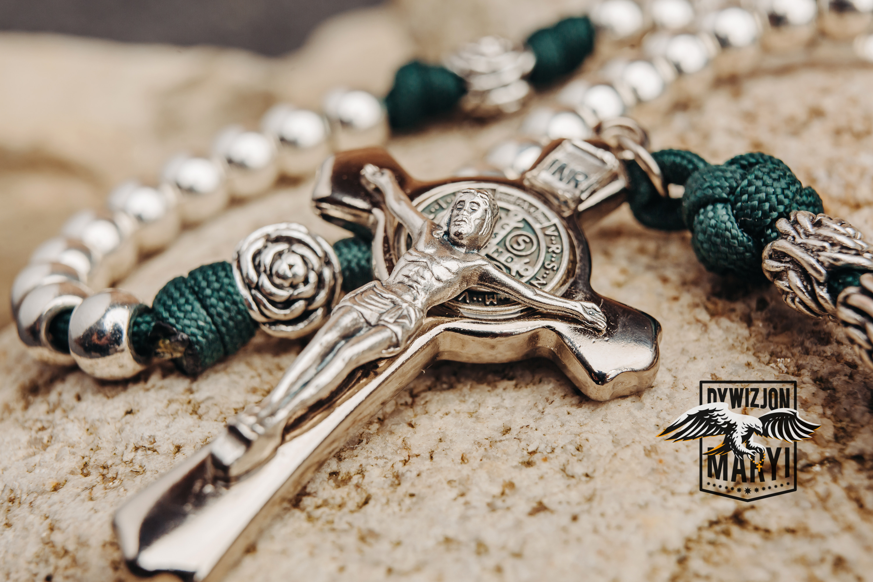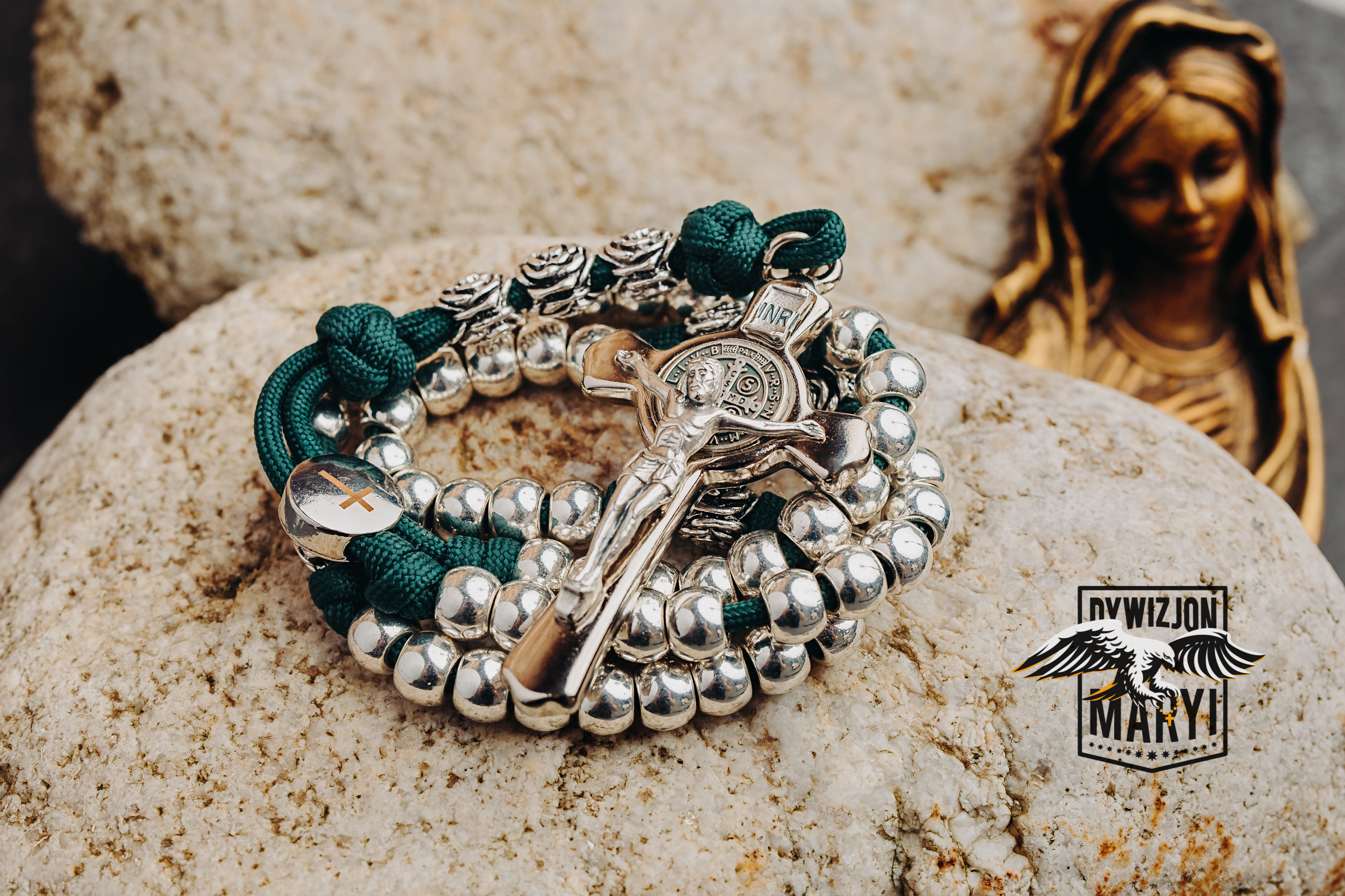 Unikatowy design różańca pozwala na szybką naprawę oraz wymianę poszczególnych elementów. Wytrzymałość linki spadochronowej (paracordu) gwarantuje użytkowanie różańca przez długie lata.
